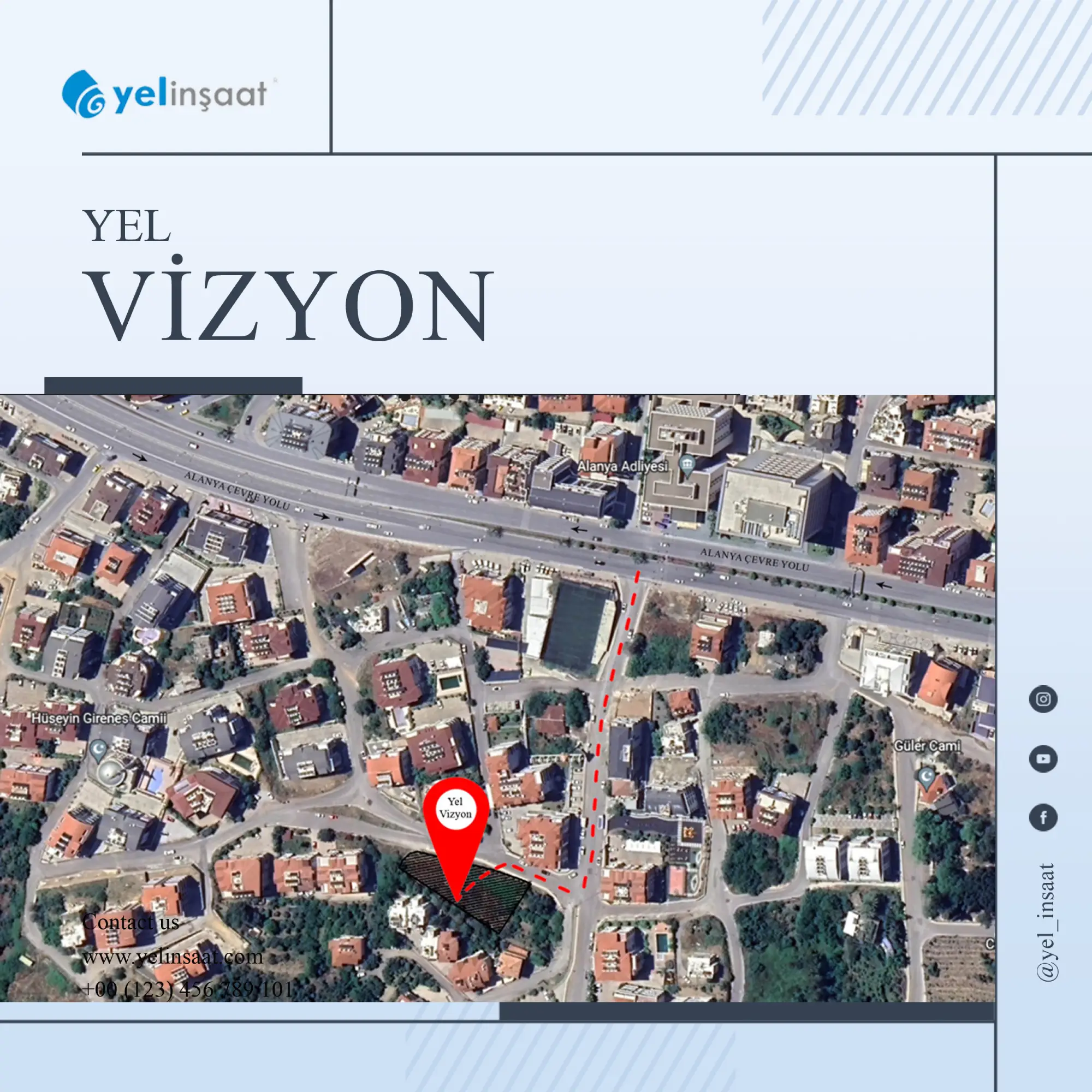 Projemiz Konum olarak Anaokulu , okul , market , sağlık ocağı , Pazar yeri , adliye yürüme mesafesinde olup denize 1000 mt , Gazipaşa havalimanına 35 km mesafededir.